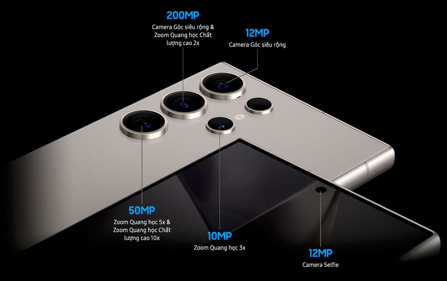 | Camera sau | 4 Camera : 200 MP, f/1.7, 24mm | 10 MP, f/2.4, 67mm (telephoto) | 50 MP, f/3.4, 111mm (periscope telephoto) | 12 MP, f/2.2, 13mm, 120˚ (ultrawide) |